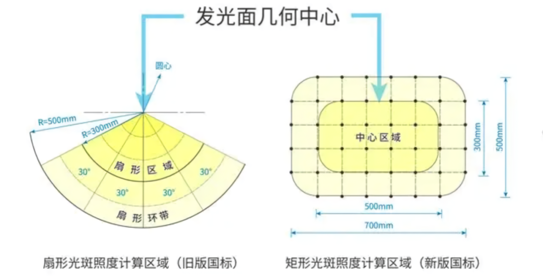 旧国标中,有效照明区域是半径为500mm的120°扇形区域,而新国标照明计算区域扩大,照度要求也更严格,修改为700mmx500mm的矩形,更符合常见的书桌形状。