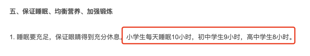 保持充足的睡眠,也能起到预防近视的作用。教育部印发的《中小学学生近视眼防控工作方案》指出,要保证: