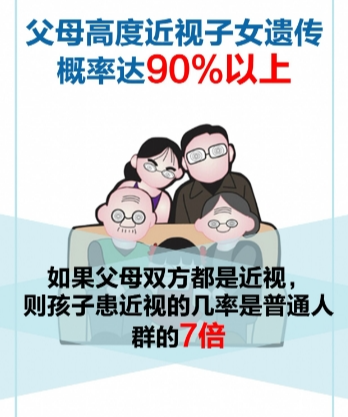 近视是具有遗传性的,爸爸妈妈近视,孩子很有可能也会近视,近视度数越高,孩子遗传的概率也会越大。