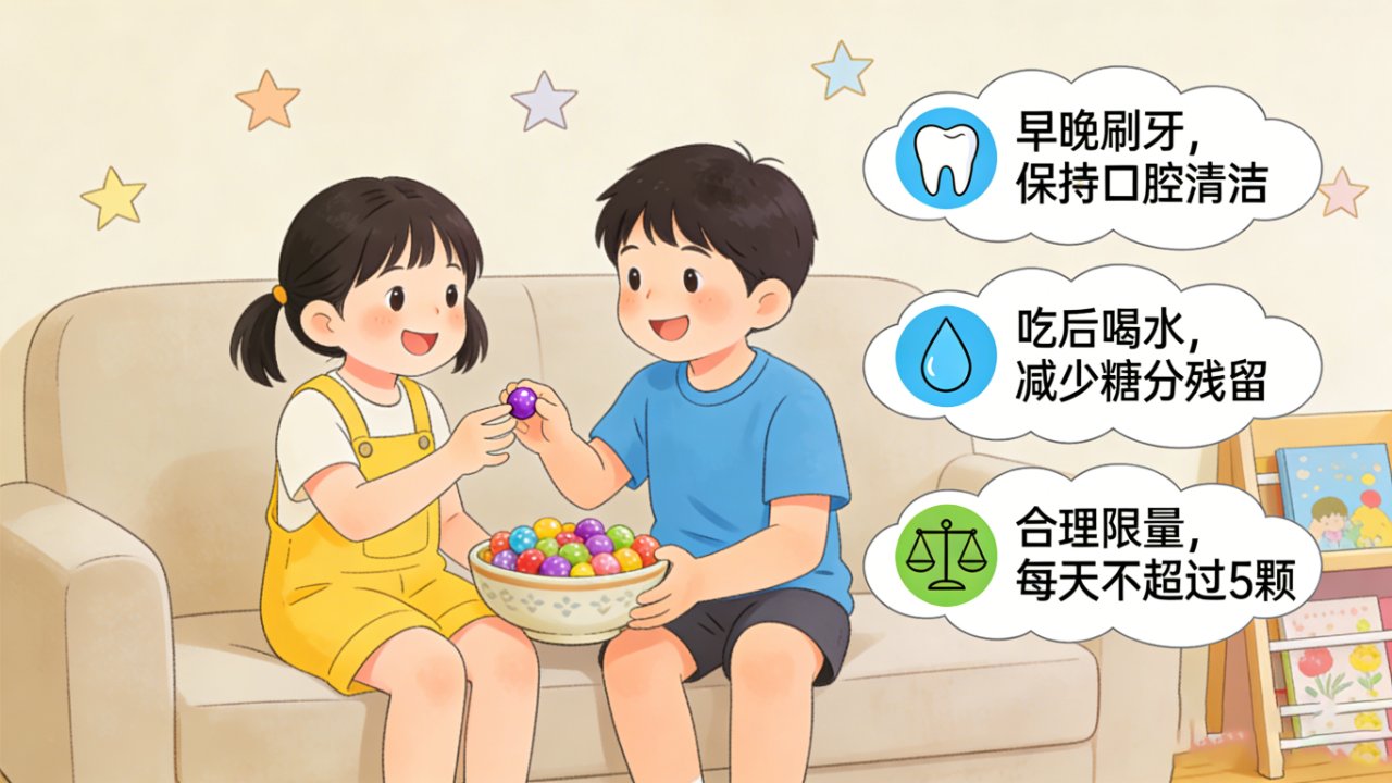 看到这里,是不是赶紧把家里的糖果罐藏起来了?其实不用“一刀切”禁止吃糖,掌握科学方法,既能满足娃的小馋嘴,又能守护健康,重点做好这3件事—